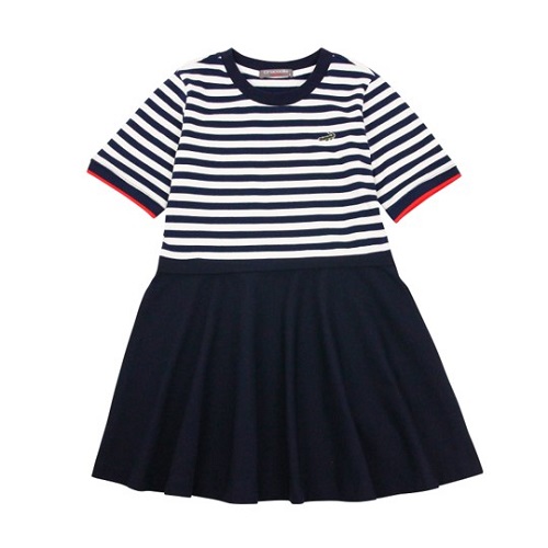 條紋圓領拼接洋裝(大童)