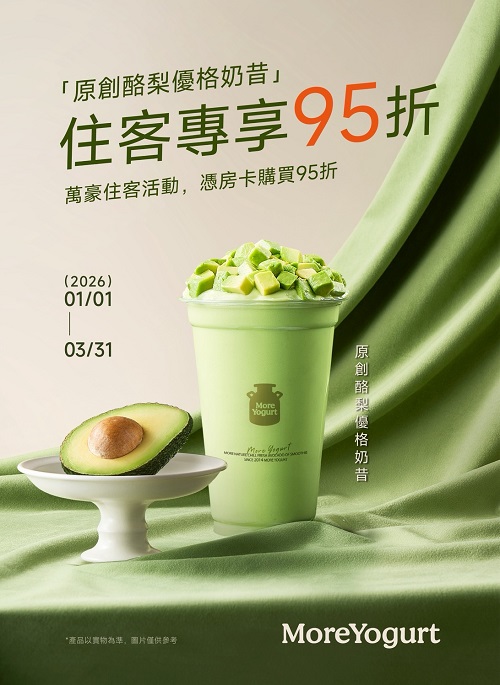 憑萬豪酒店房卡,購買原創酪梨優格奶昔享95折優惠