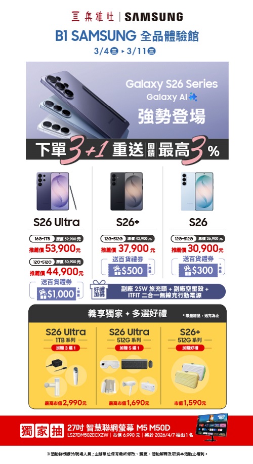 Galaxy S26強勢登場:預購再享百貨最高3%回饋!