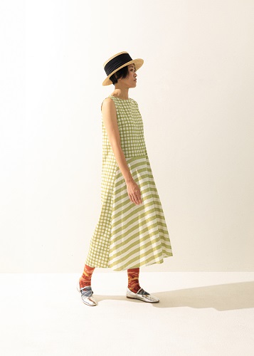 幾何森息格紋拼接無袖洋裝