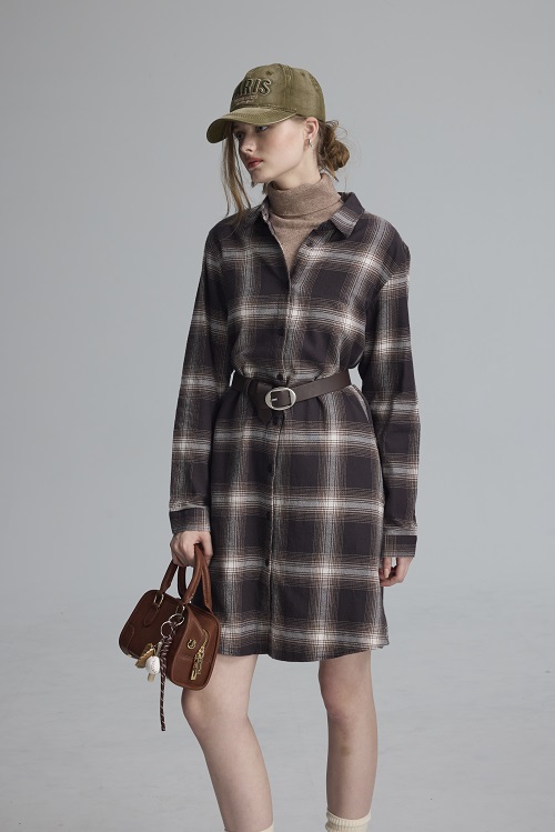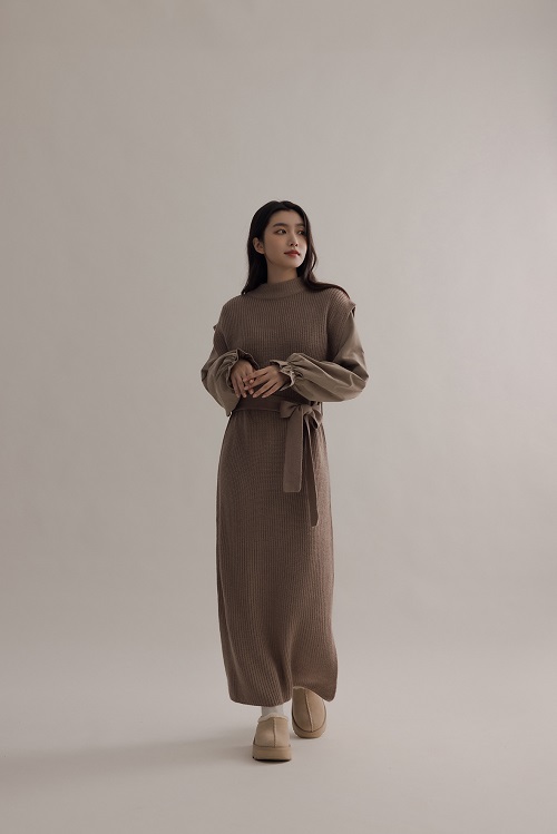 異材質假兩件綁帶長洋(泥灰杏/深灰)
