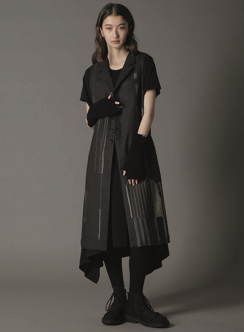 STRIPE PATTERN印花單排釦西裝領長版背心