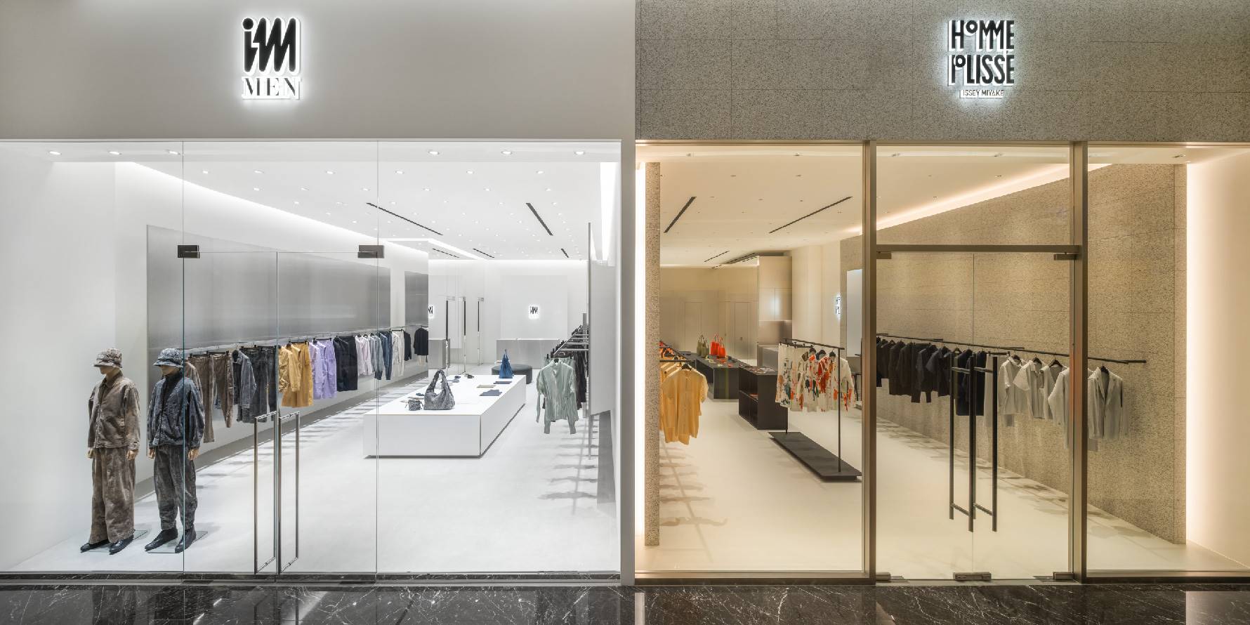 此次 IM MEN 與 HOMME PLISSÉ ISSEY MIYAKE 同步開幕,不僅展現兩品牌迥異的空間風格,也引領春夏新篇章:IM MEN 以「DANCING TEXTURE」捕捉布料流動與身體律動,HOMME PLISSÉ 則從義大利自然與文化紋理汲取靈感,探索服裝與日常的交匯。兩品牌在新店舖中,各自延伸設計語彙,呈現完整的視覺與穿著體驗。