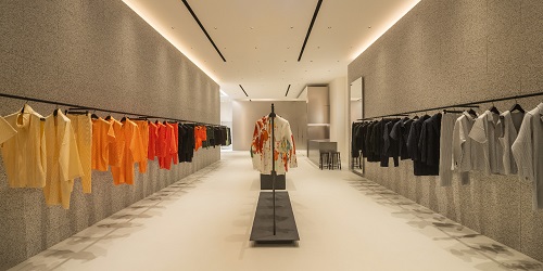 深耕高雄十年,HOMME PLISSÉ ISSEY MIYAKE 以全新美學視野進駐義享時尚廣場。店舖運用大理石材,天然紋理與厚實質地勾勒沉穩灰階氛圍,黑色陳列鐵件與簡約幾何線條交錯,營造細膩層次。低調空間精準襯托品牌標誌性縐褶與獨特色彩,呈現當代紳士的優雅生活格調。