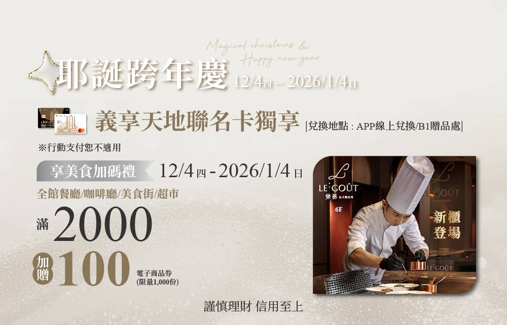 - 義享時尚廣場及各家銀行保留活動及贈品修改,變更及終止之權利,無須另行通知。