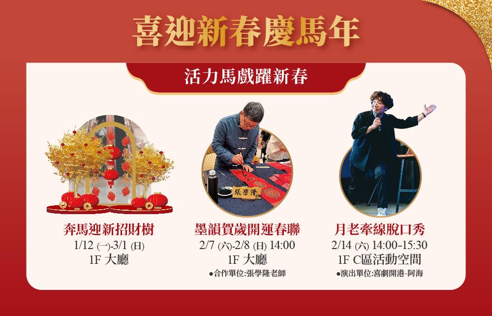 憑當日館內不限金額消費發票即可領取喜氣春聯乙份,每日限量,送完為止。