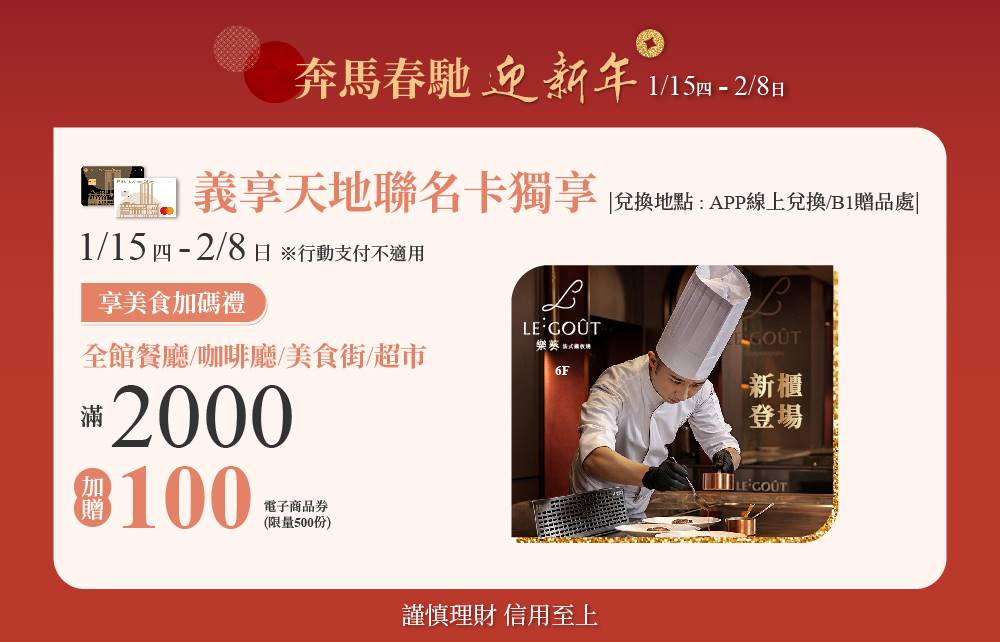 - 義享時尚廣場及各家銀行保留活動及贈品修改,變更及終止之權利,無須另行通知。