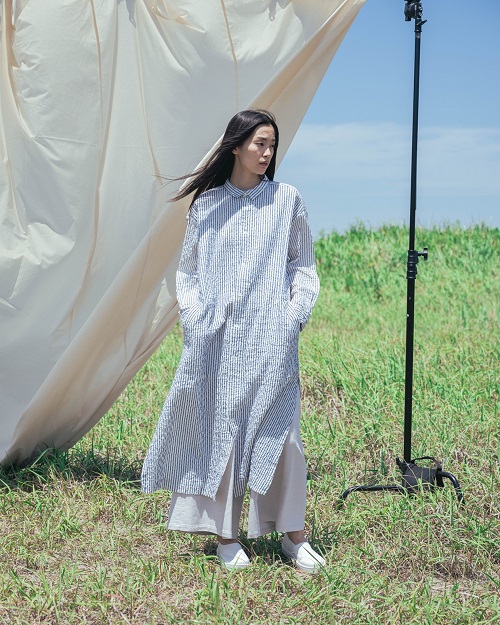 SHRUNKEN STITCHES襯衫領長袖洋裝