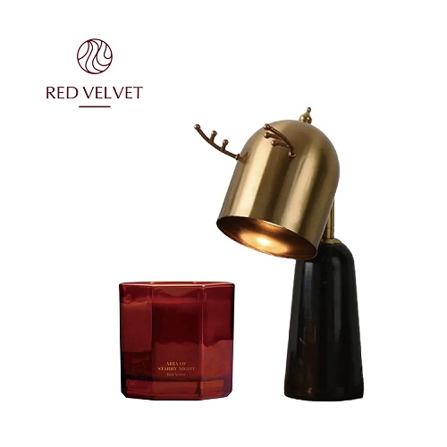 Designer's ART Lamp紅絲絨金色鹿角大理石座燭照燈